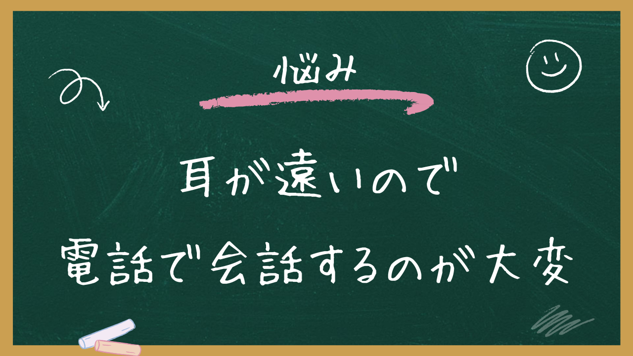 父は耳が遠く、電話をする時にはこちらが大声でしゃべらないといけないので、身振り手振りを補助で使うことができない電話は疲れる。 高齢者は耳が聴こえにくくなってくるので、家族のこのような声はよく聞きます。 親と同居していれば電話の回数も少ない... -