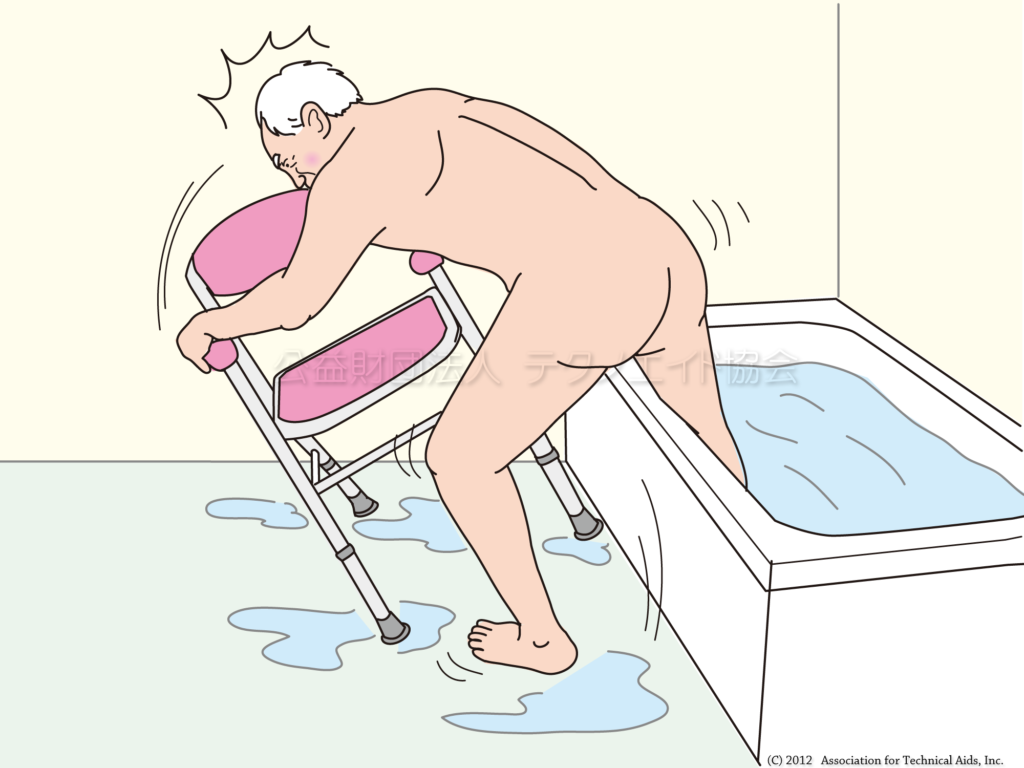 【事例】シャワーチェアにつかまって浴槽をまたぎ、本体ごと転倒しそうになる