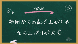 これらの原因を解消したり、立ち上がりの際に何か掴めるものを設置するなどして対処していく必要があります。